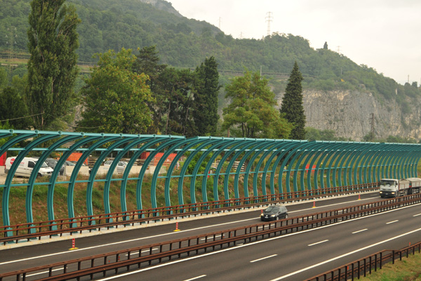 La barriera antirumore realizzata lungo l’autostrada del Brennero (A22) tra Rovereto Nord e Rovereto rappresenta un esempio innovativo di ingegneria strutturale. Costruita nel 2008, si distingue dalle tradizionali barriere grazie alla particolare configurazione del terreno: in questo tratto, l’autostrada corre “in trincea” mentre l’abitato di Mori, situato in posizione sopraelevata, necessitava di una protezione efficace contro il rumore. Progettata dall’ufficio tecnico di Autostrada del Brennero Spa, nelle figure dell’Ing. Bergamo e dell’Ing. Vivaldelli, la struttura è composta da montanti in acciaio Corten S355J2G2W, un materiale resistente alle basse temperature e ideale per mantenere elevate caratteristiche strutturali. I montanti HEB 240, alti circa 10 metri, sorreggono pannelli fonoassorbenti in alluminio verniciato con fibra minerale, garantendo una riduzione ottimale dell’inquinamento acustico. La disposizione cromatica dei pannelli è stata attentamente studiata per non distrarre i conducenti. Con un peso complessivo di oltre 200 tonnellate e una superficie fonoassorbente di circa 3.500 mq, questa barriera acustica imponente è stata montata durante le ore notturne per ridurre al minimo i disagi al traffico. Ettore Bertoldini ha contribuito con l’eccellenza nella lavorazione dei metalli, dimostrando competenza e affidabilità nei progetti complessi. Anno: 2008 Committente: Autostrada del Brennero SpA | |||